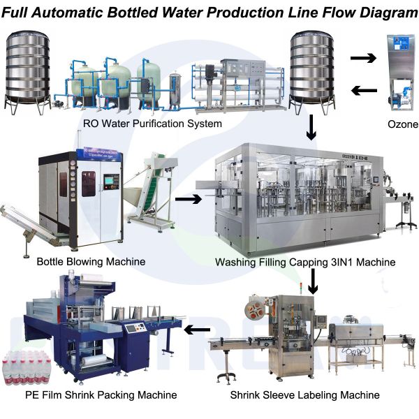 We provide the turn-key solution, including: water treatment system, injection system, bottle blowing machine, bottle filling machine, packaging machine, conveyor system, electrical system, cable wire, etc, and related raw materials: bottle preforms, bottle cap, plastic particles, labels, shrink film, clean room building material etc. The corresponding pre-sale whole plant planning drawings and after-sales installation and debugging maintenance, we all have a A to Z complete service.